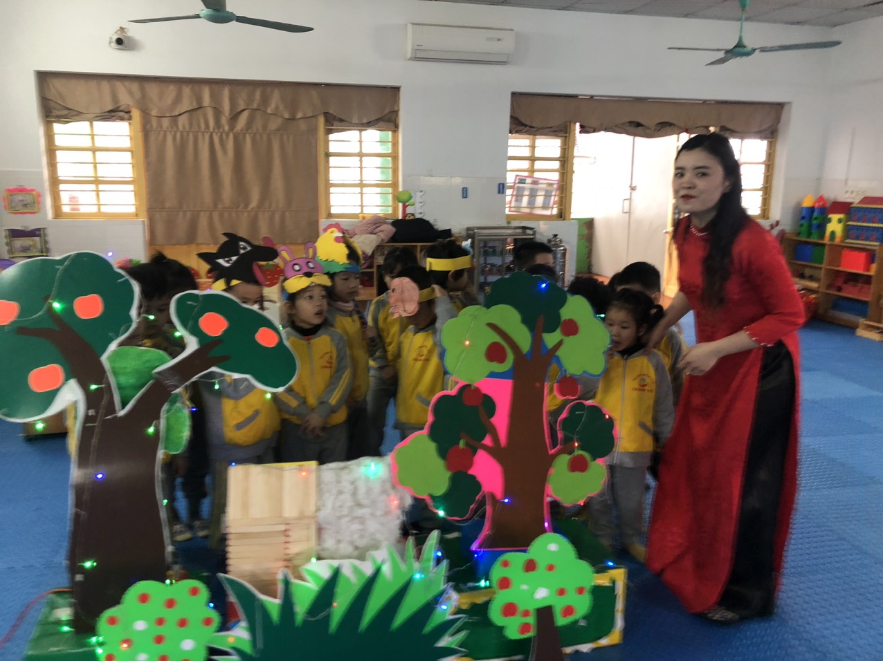 Phát triển ngôn ngữ cho trẻ là mục tiêu quan trọng nhất của giáo dục mầm non. Vì ngôn ngữ sẽ giúp trẻ bày tỏ, trao đổi và giao tiếp với nhau trong quá trình học tập cũng như vui chơi. Thông qua hoạt động dạy PTNN sẽ giúp trẻ phát triển lời nói mạch lạc và rõ ràng hơn. Câu chuyện " Cáo, Thỏ và Gà trống" giáo dục trẻ lòng dũng cảm, biết yêu thương giúp đỡ mọi người khi gặp khó khăn. Và biết những kẻ lười biếng tham lam sẽ không bao giờ được hưởng những điều tốt đẹp. Trên đây là một số hình ảnh: