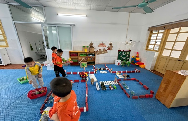 Góc xây dựng: Trẻ sẽ vào vai chú công nhân, những việc làm của trẻ thể hiện