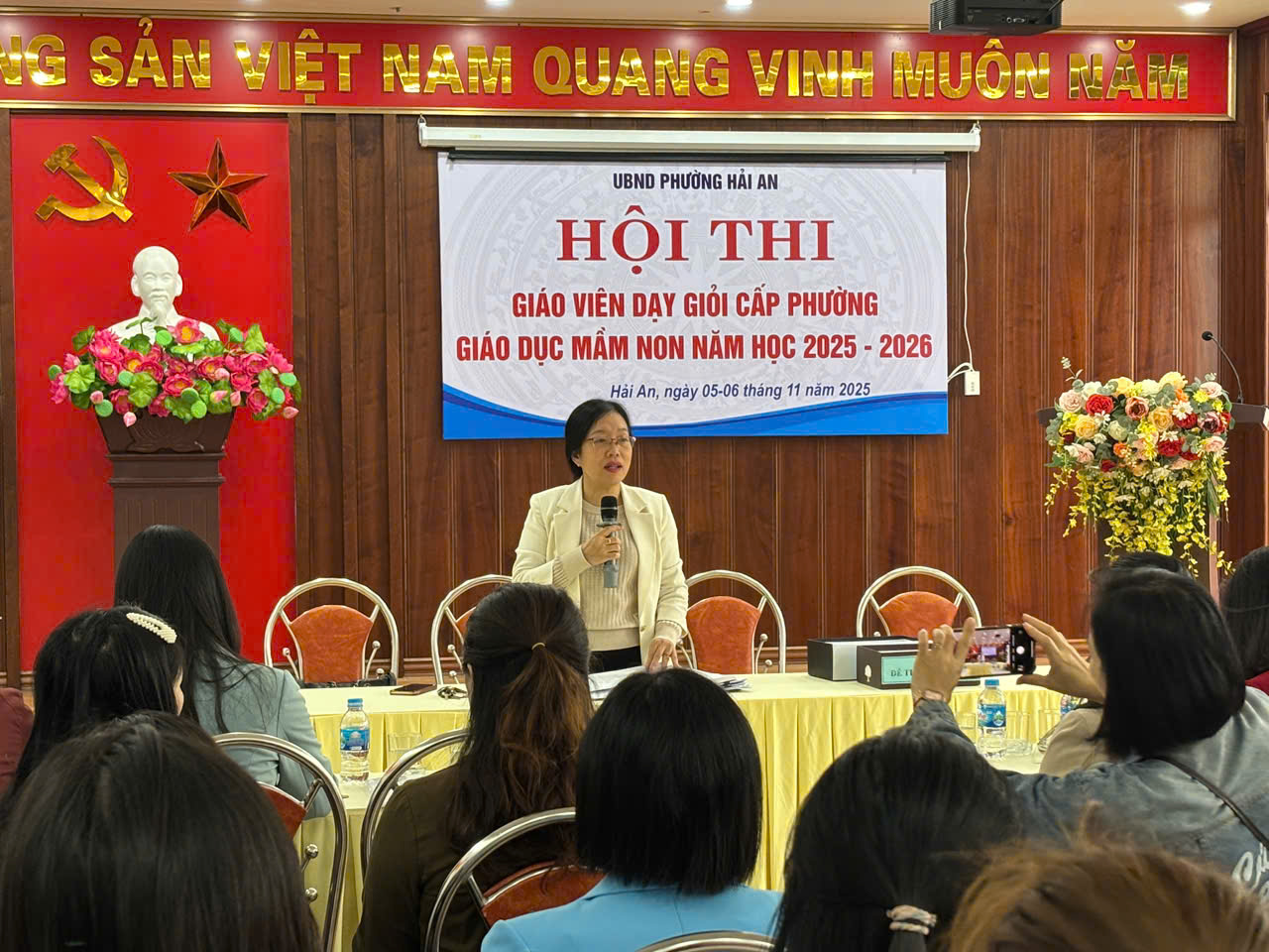 và công bằng, với sự tham dự của lãnh đạo Phòng Văn hóa phường Hải An, Ban Giám hiệu các trường mầm non trong phường cùng đông đảo các giáo viên dự thi. Đây là hoạt động mở đầu quan trọng, tạo tiền đề cho hội thi diễn ra thuận lợi, đảm bảo đúng quy chế và mang lại hiệu quả chuyên môn thiết thực.