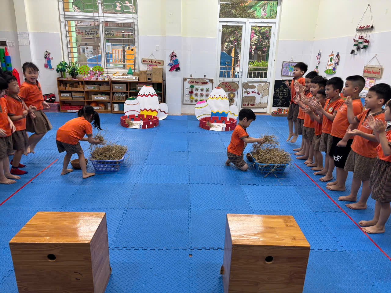 *** Các bé lớp 5A3 trường mầm non Thành Tô đã có một giờ học phát triển thể chất rất hay và thú vị đấy các bố mẹ ạ! Đó chính là giờ học “ Bật từ trên cao xuống” cùng các trò chơi với những quả trứng thật ngộ nghĩnh nữa đấy!