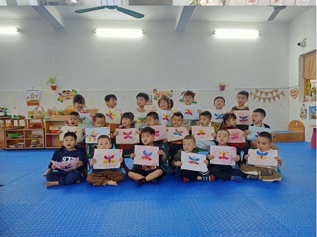 sản phẩm trong giờ học tạo hình xếp dán con bướm và nặn ốc sên của các bé lớp