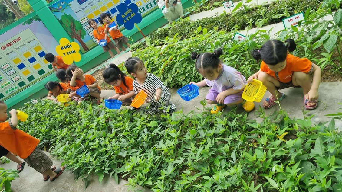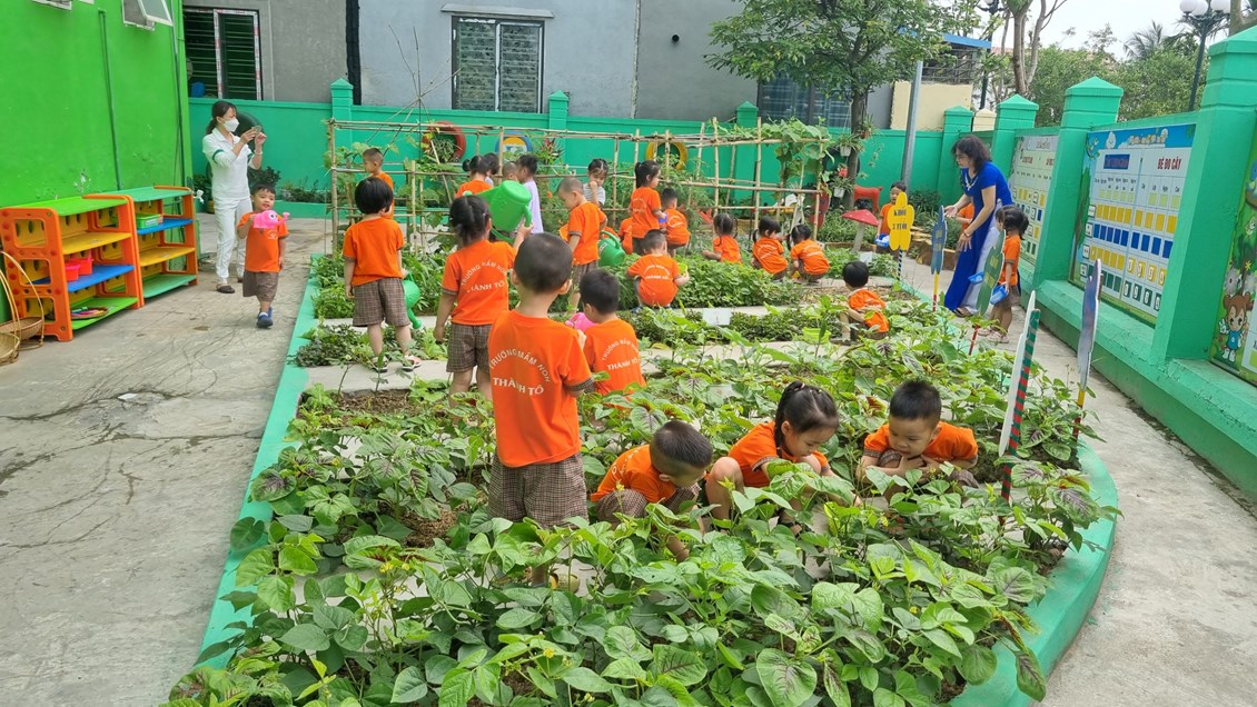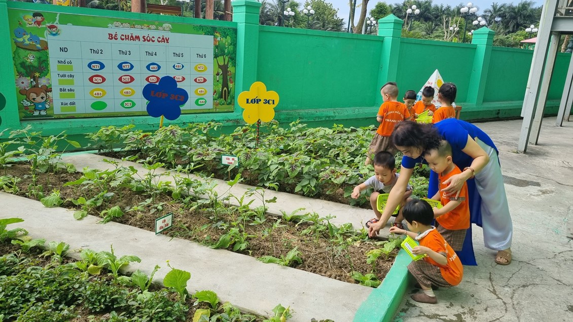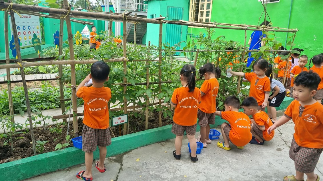 Xin giới thiệu một số hình ảnh về hoạt động trải nghiệmchăm sóc vườn rau tại trường mầm non Thành Tô: