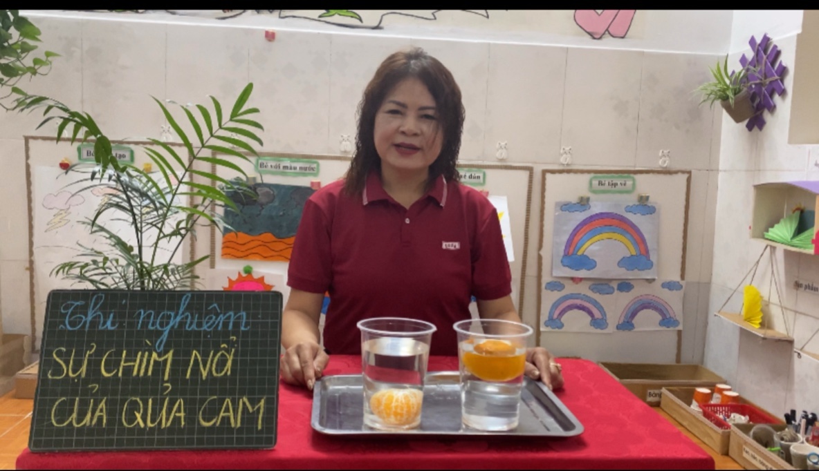 🍊Trẻ biết tên gọi, đặc điểm nổi bật của quả cam. Trẻ gọi tên được quả chìm – quả nổi