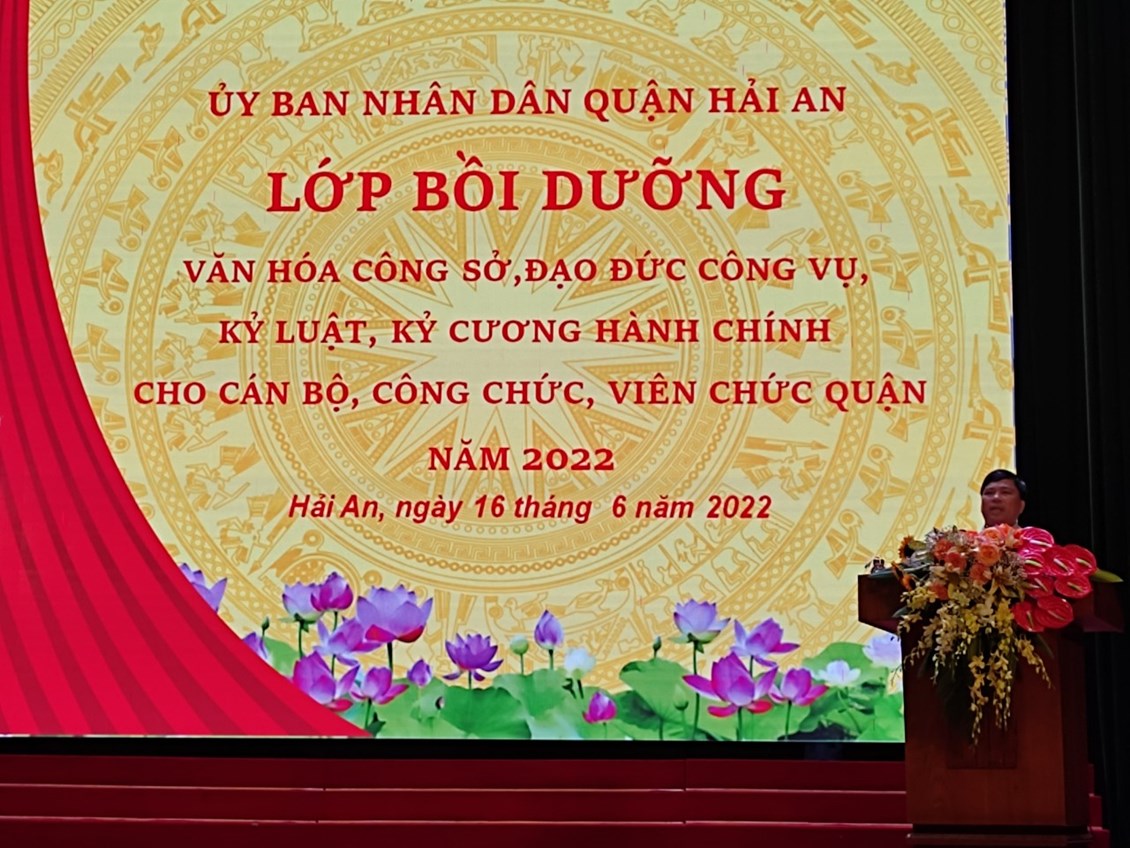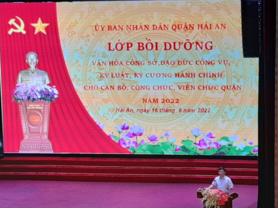 Thực hiện TB số 228/TB-UBND ngày 9/6/2022 của Ủy Ban nhân dân quận Hải An vv tham gia lớp bồi dưỡng văn hóa công sở, đạo đức công vụ, kỷ luật kỷ cương cho CBCCVC quận năm 2022.