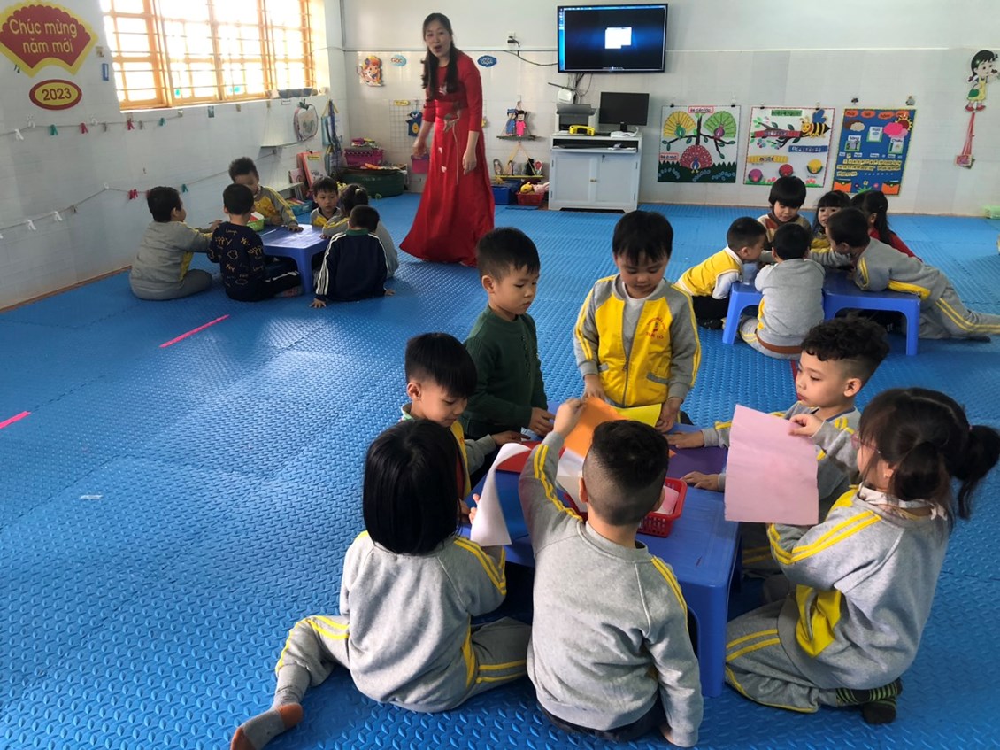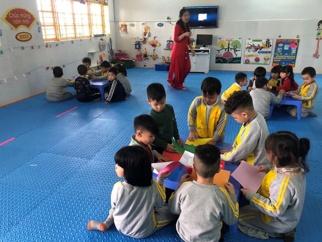Trong cuộc sống của chúng ta, có rất nhiều loại giấy và sử dụng với nhiều mục đích khác nhau. Để cho trẻ khám phá sự kỳ diệu của giấy giáo viên đã thưc hiện tiết học " Khám phá sự kỳ diệu của giấy". Qua tiết học trẻ biết được tên gọi, đặc điểm, tính chất tên gọi của một số loại giấy như là: giấy màu, giấy trắng. giấy nhún, giấy báo... Trẻ biết được nguyên liệu làm ra giấy, quy trình sản xuất giấy,. Phát triển cho trẻ các kỹ năng khéo léo của đôi bàn tay để làm ra các sản phẩm từ giấy. Giáo dục trẻ biết giữ gìn giấy cẩn thận, không làm nhàu nát, sử dụng tiết kiệm giấy, không vất giấy bừa bãi góp phần bảo vệ môi trường. Dưới đây là một số hình ảnh: