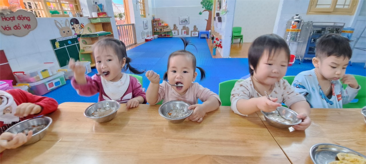 giờ ăn không chỉ là một nội dung trong thời gian biểu hàng ngày mà giờ ăn còn là hoạt động rất vui vẻ, ngoài ý nghĩa cung cấp cho trẻ năng lượng thì trẻ còn được học bao kiến thức từ việc yêu thích các món ăn, có hiểu biết về cách chế biến một số món ăn, kỹ năng tự phục vụ cho trẻ.