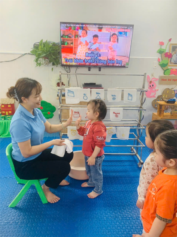 Đối với trẻ 24-36 tháng tuổi ở trường mầm non thì việc vệ sinh cá nhân cho trẻ