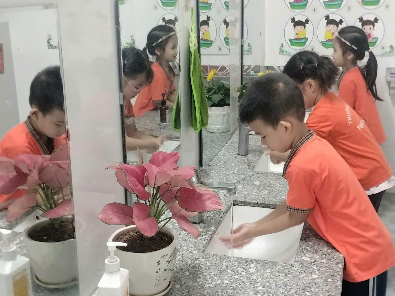 Dưới đây là 1 số hình ảnh giờ vệ sinh – giờ ăn của các bé lớp 5A2 trường mầm non Thành Tô.