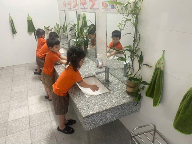 chơi, sau khi đi vệ sinh và trước mỗi bữa ăn, hoặc mỗi khi tay bẩn thì tất cả học