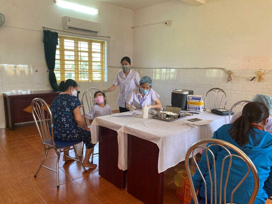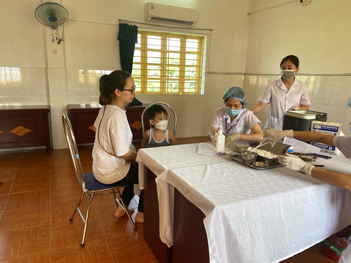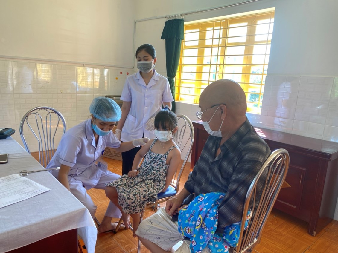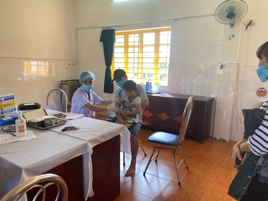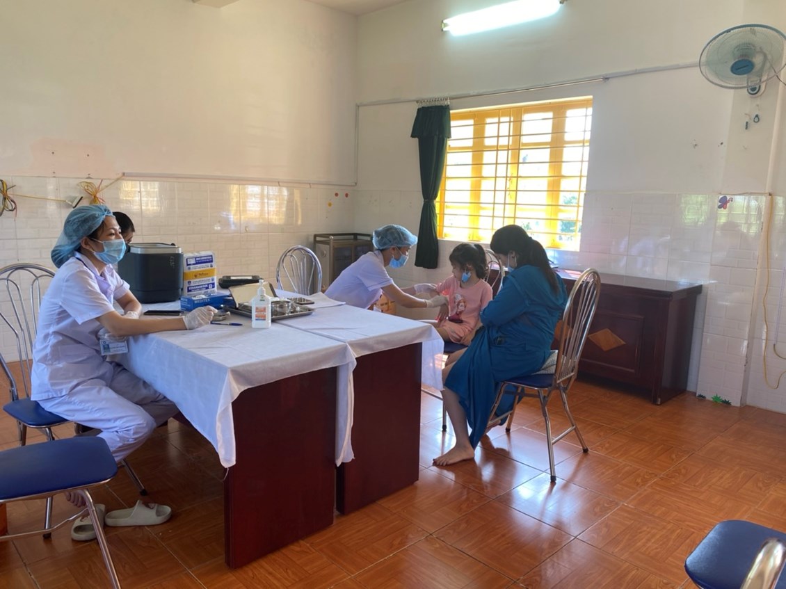 100% các cháu tham gia tiêm đều đảm bảo an toàn tuyệt đối về sức khỏe, các cháu vui và thể hiện rất mạnh mẽ khi tiêm.
