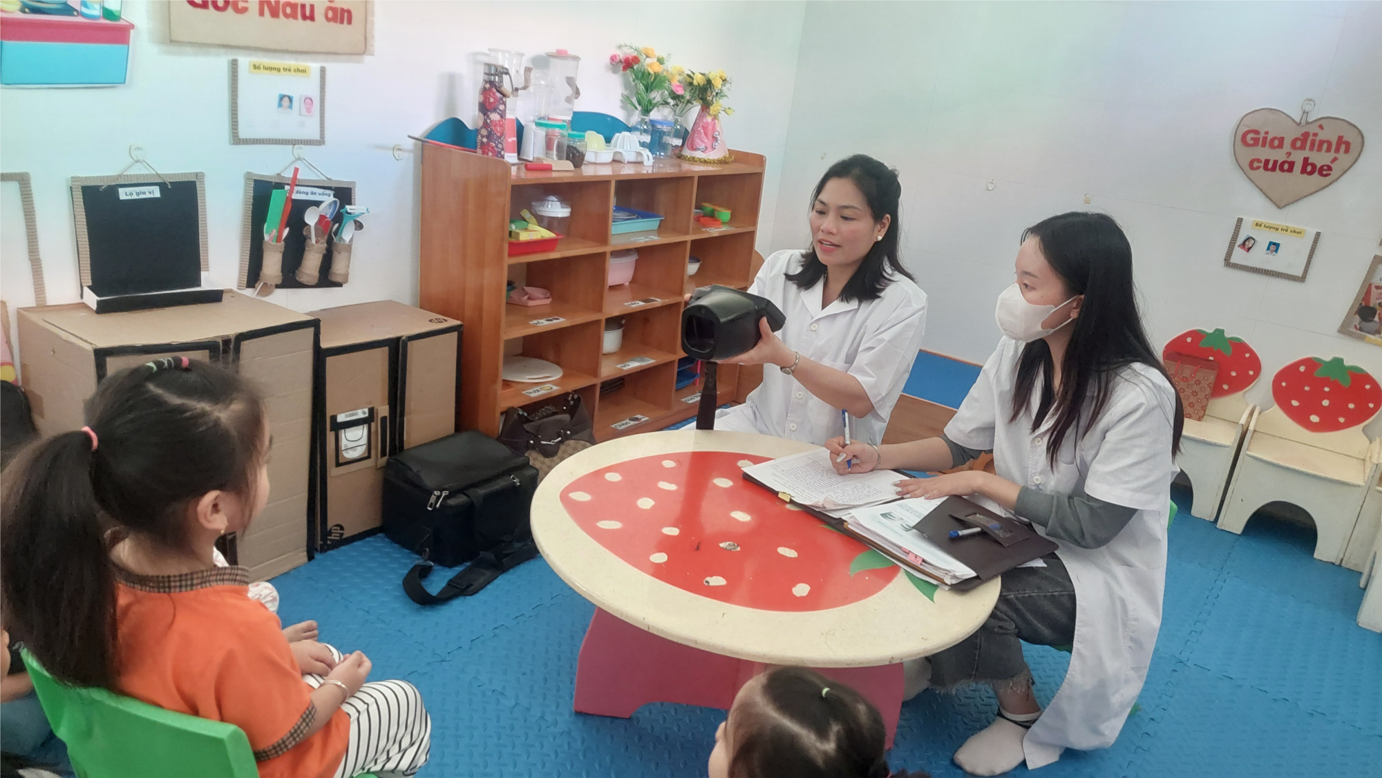 Dưới đây là một số hình ảnh của buổi khám mắt của các cháu