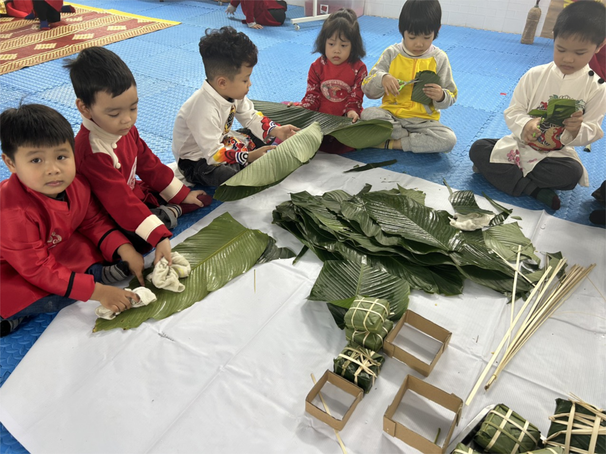 Hoà trong không khí hân hoan chào mừng xuân Giáp Thìn 2024. Lớp 5A1 trường mầm non Thành Tô đã tổ chức hoạt động trải nghiệm cho học sinh gói bánh chưng ngày tết nhằm giúp cho các bé tìm hiểu về phong tục, giáo dục nét đẹp văn hoá truyền thống của dân tộc Việt Nam, trẻ hiểu sâu sắc về ý nghĩa bánh chưng ngày tết và được cùng tham gia gói bánh cùng cô.
